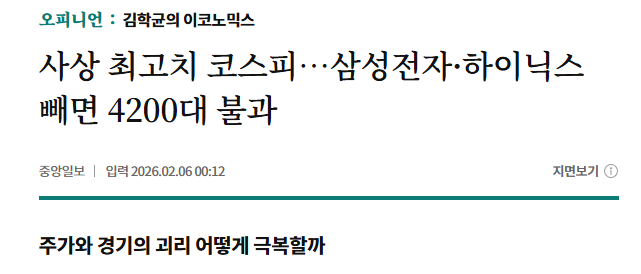 코스피 사상 최대치...삼성전자 하이닉스 빼면 4200대에 불과 작성자 정보 최고관리자 작성일 02.07 07:47 컨텐츠 정보 94 조회 0 댓글 0 추천 0 비추천 목록 4200대도 사상 최대치다... 0 추천 추천 비추천 0 비추천 댓글 로그인한 회원만 댓글 등록이 가능합니다. 이전 다음 목록