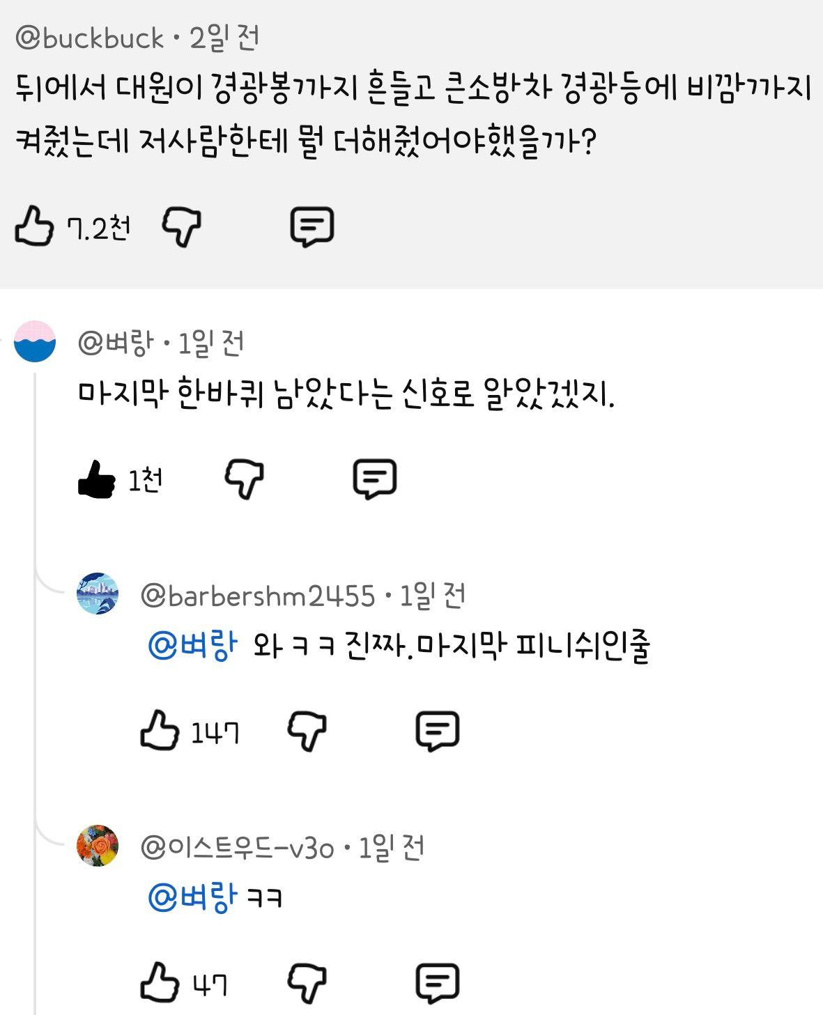119대원이 전방 위험을 알리고있는 상황 작성자 정보 최고관리자 작성일 01.02 14:34 컨텐츠 정보 3 조회 0 댓글 0 추천 0 비추천 목록 0 추천 추천 비추천 0 비추천 댓글 로그인한 회원만 댓글 등록이 가능합니다. 이전 다음 목록