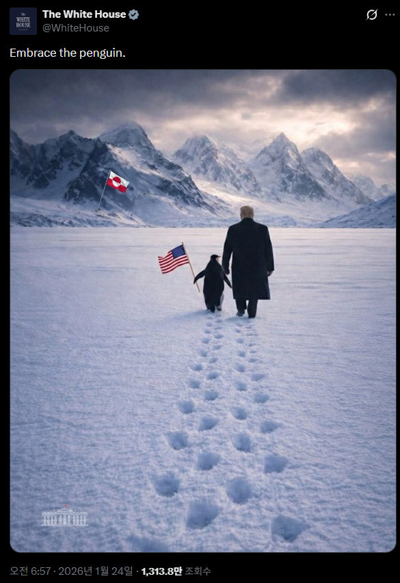 백악관이 밝힌 트럼프의 그린란드 침략 이유? 작성자 정보 최고관리자 작성일 01.24 13:17 컨텐츠 정보 9 조회 0 댓글 0 추천 0 비추천 목록 0 추천 추천 비추천 0 비추천 댓글 로그인한 회원만 댓글 등록이 가능합니다. 이전 다음 목록
