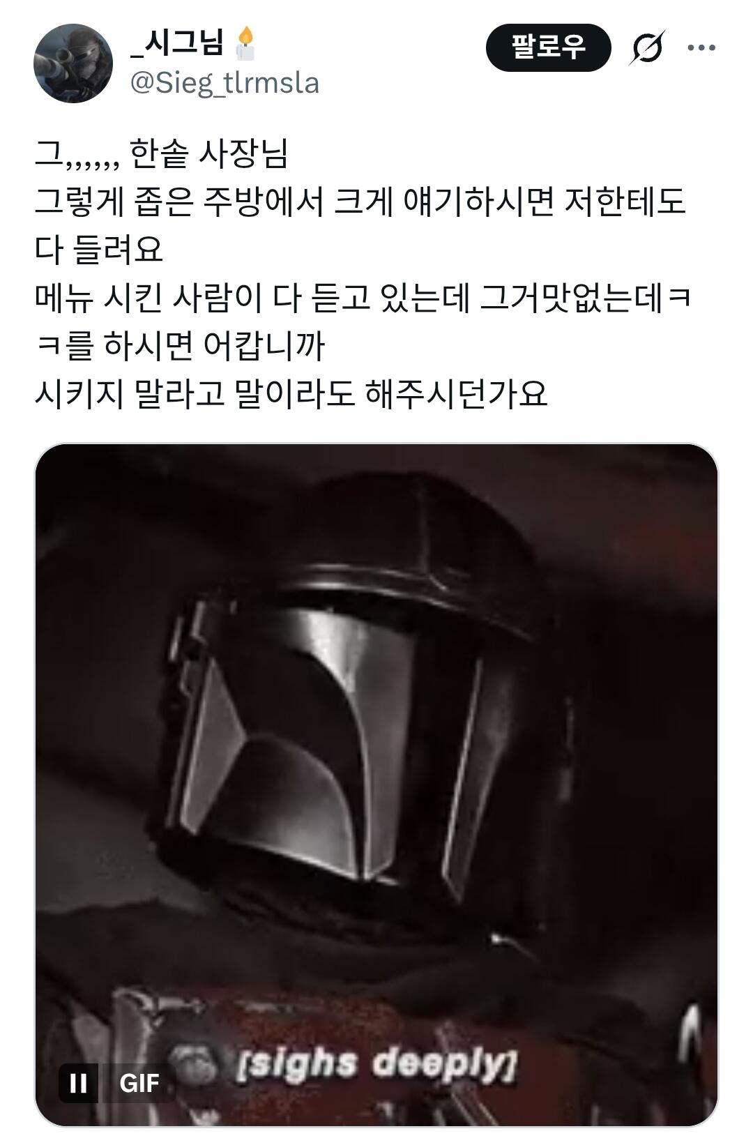 한솥사장 “이거 맛없는데 시키셨네” 작성자 정보 최고관리자 작성일 2025.12.10 13:12 컨텐츠 정보 6 조회 0 댓글 0 추천 0 비추천 목록 0 추천 추천 비추천 0 비추천 댓글 로그인한 회원만 댓글 등록이 가능합니다. 이전 다음 목록