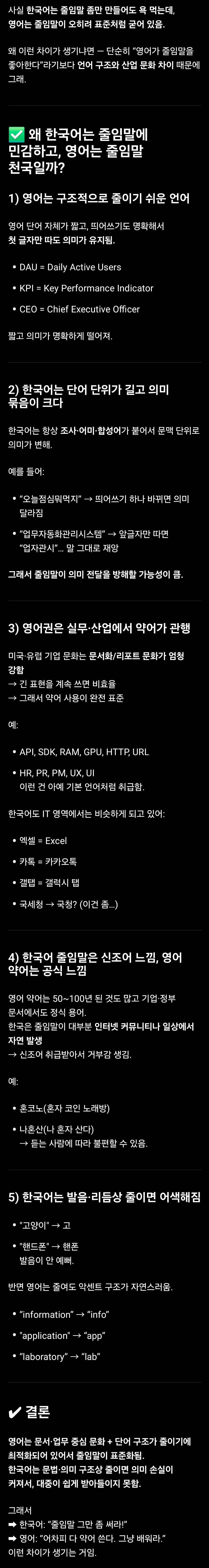 왜 한국어는 줄임말에 민감한가 작성자 정보 최고관리자 작성일 2025.12.09 02:17 컨텐츠 정보 8 조회 0 댓글 0 추천 0 비추천 목록 0 추천 추천 비추천 0 비추천 댓글 로그인한 회원만 댓글 등록이 가능합니다. 이전 다음 목록