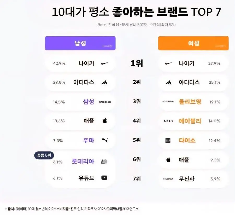 요즘 10대들이 좋아하는 브랜드 순위 작성자 정보 최고관리자 작성일 2025.12.09 07:25 컨텐츠 정보 13 조회 0 댓글 0 추천 0 비추천 목록 나이키 압도적 1위 0 추천 추천 비추천 0 비추천 댓글 로그인한 회원만 댓글 등록이 가능합니다. 이전 다음 목록