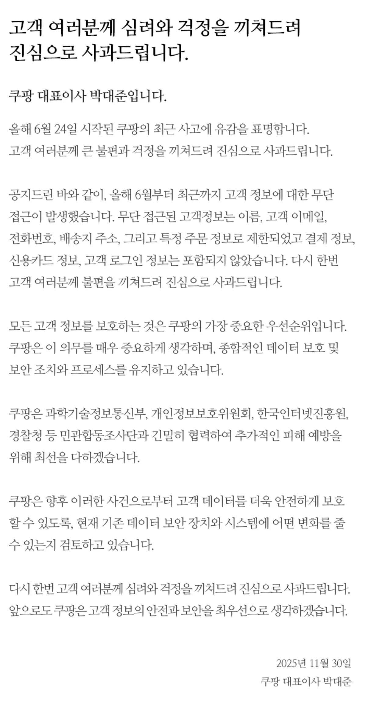 쿠팡 사과문 분석글 작성자 정보 최고관리자 작성일 2025.12.05 12:23 컨텐츠 정보 8 조회 0 댓글 0 추천 0 비추천 목록 위는 사과문의 원문 아래는 분석글 결론: 올라온 건 사과문 아님. 법적 책임 회피용 매뉴얼임. 0 추천 추천 비추천 0 비추천 댓글 로그인한 회원만 댓글 등록이 가능합니다. 이전 다음 목록