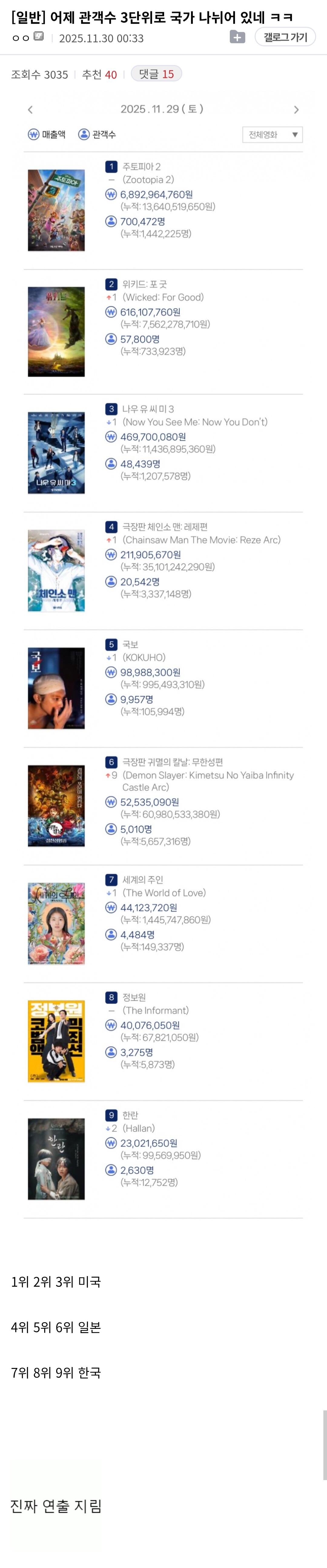어제 한국 극장가에서 벌어진 대단한 연출 작성자 정보 최고관리자 작성일 2025.12.01 23:46 컨텐츠 정보 16 조회 0 댓글 0 추천 0 비추천 목록 0 추천 추천 비추천 0 비추천 댓글 로그인한 회원만 댓글 등록이 가능합니다. 이전 다음 목록