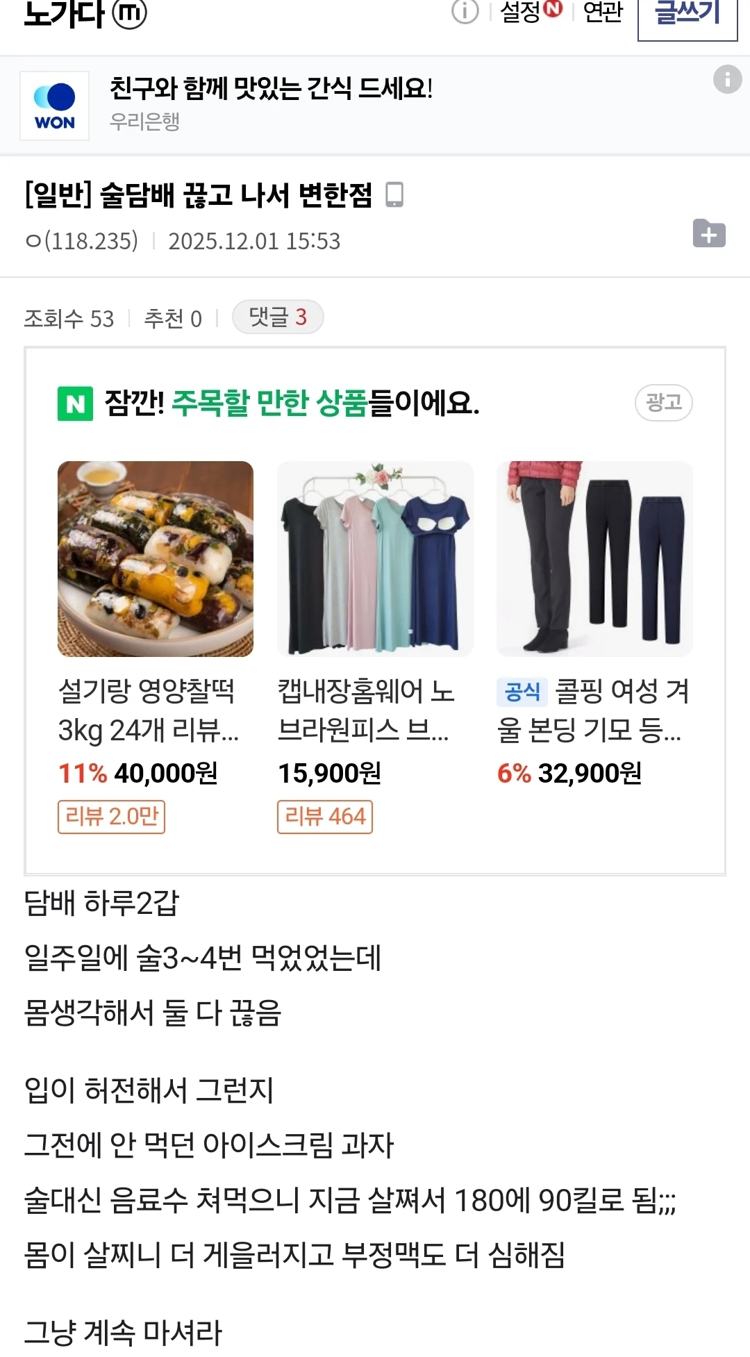 술 담배 끊고 변한점 작성자 정보 최고관리자 작성일 2025.12.01 22:36 컨텐츠 정보 15 조회 0 댓글 0 추천 0 비추천 목록 0 추천 추천 비추천 0 비추천 댓글 로그인한 회원만 댓글 등록이 가능합니다. 이전 다음 목록