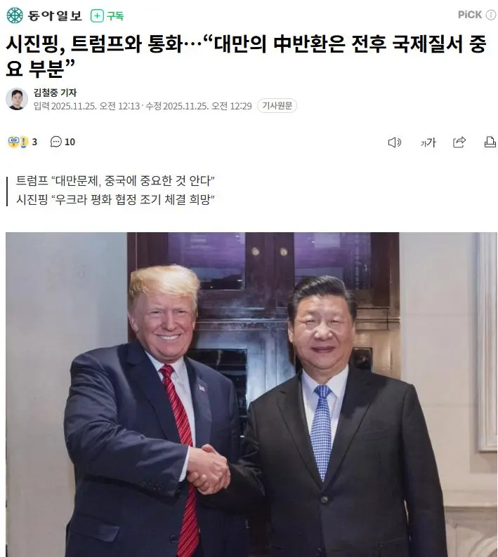 "트럼프-시진핑 긴급 통화 : 미국은 우크라이나 챙기고, 중국은 대만 챙김" 작성자 정보 최고관리자 작성일 2025.11.25 07:52 컨텐츠 정보 189 조회 0 댓글 0 추천 0 비추천 목록 24일 저녁 통화해서 "미국은 중국한테 '우크라이나 종전' 협조 얻어내고, 중국은 미국한테 '대만 문제' 존중 받아냄"이번 통화로 중일 갈등이 우습게 됨 0 추천 추천 비추천 0 비추천 댓글 로그인한 회원만 댓글 등록이 가능합니다. 이전 다음 목록