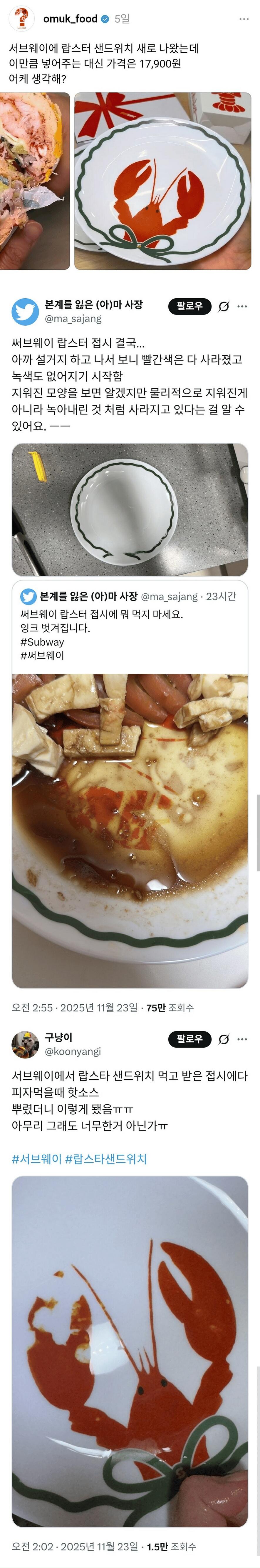 난리난 서브웨이 랍스터 접시 작성자 정보 최고관리자 작성일 2025.11.24 12:25 컨텐츠 정보 274 조회 0 댓글 0 추천 0 비추천 목록 0 추천 추천 비추천 0 비추천 댓글 로그인한 회원만 댓글 등록이 가능합니다. 이전 다음 목록