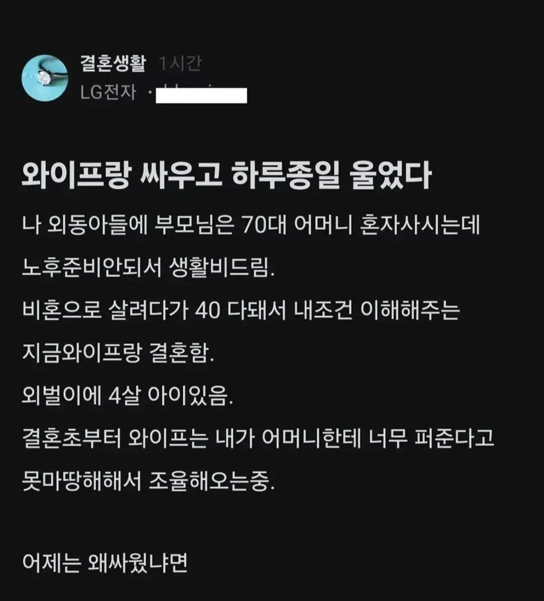 와이프랑 싸우고 하루종일 울었다... 작성자 정보 최고관리자 작성일 02.04 07:31 컨텐츠 정보 18 조회 0 댓글 0 추천 0 비추천 목록 하아.. 나도 미혼이지만... 저런거보면 결혼을 꼭 해야되나.... 0 추천 추천 비추천 0 비추천 댓글 로그인한 회원만 댓글 등록이 가능합니다. 이전 다음 목록