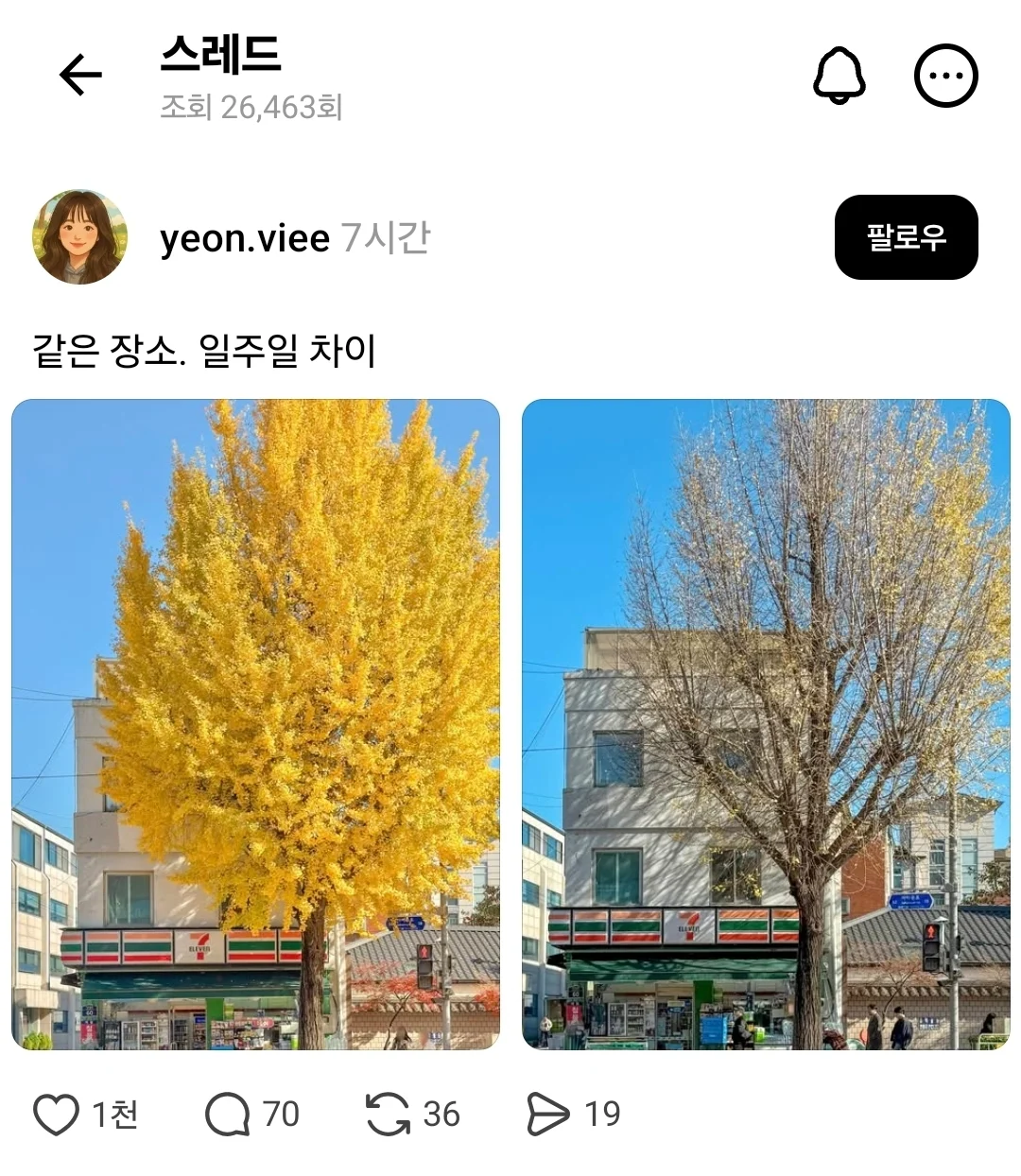 같은 장소 일주일 차이 작성자 정보 최고관리자 작성일 2025.11.23 22:49 컨텐츠 정보 413 조회 0 댓글 0 추천 0 비추천 목록 0 추천 추천 비추천 0 비추천 댓글 로그인한 회원만 댓글 등록이 가능합니다. 이전 다음 목록