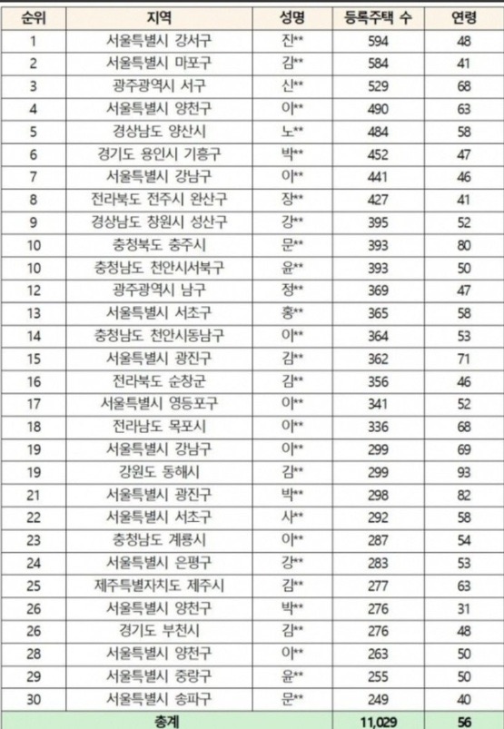 100채 이상 다 주택자 작성자 정보 최고관리자 작성일 02.03 10:58 컨텐츠 정보 14 조회 0 댓글 0 추천 0 비추천 목록 와.............한사람이 ... 가지고 있는 집이.. 마..많네요... 0 추천 추천 비추천 0 비추천 댓글 로그인한 회원만 댓글 등록이 가능합니다. 이전 다음 목록