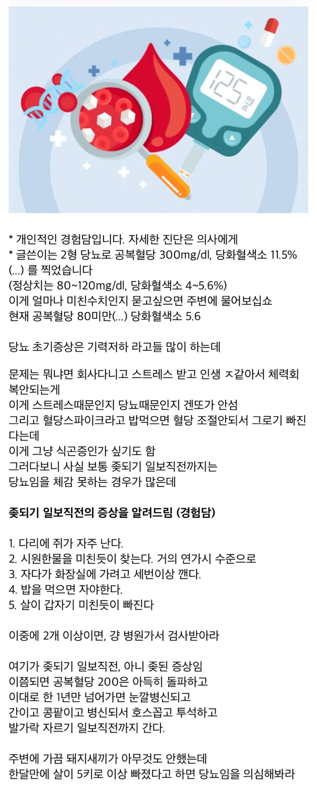 2형 당뇨 환자가 말하는 당뇨 초기증상 작성자 정보 최고관리자 작성일 2025.12.29 11:29 컨텐츠 정보 9 조회 0 댓글 0 추천 0 비추천 목록 0 추천 추천 비추천 0 비추천 댓글 로그인한 회원만 댓글 등록이 가능합니다. 이전 다음 목록