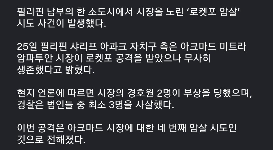 길에서 로켓포로 필리핀 시장 암살 시도 작성자 정보 최고관리자 작성일 01.31 08:17 컨텐츠 정보 13 조회 0 댓글 0 추천 0 비추천 목록 0 추천 추천 비추천 0 비추천 댓글 로그인한 회원만 댓글 등록이 가능합니다. 이전 다음 목록