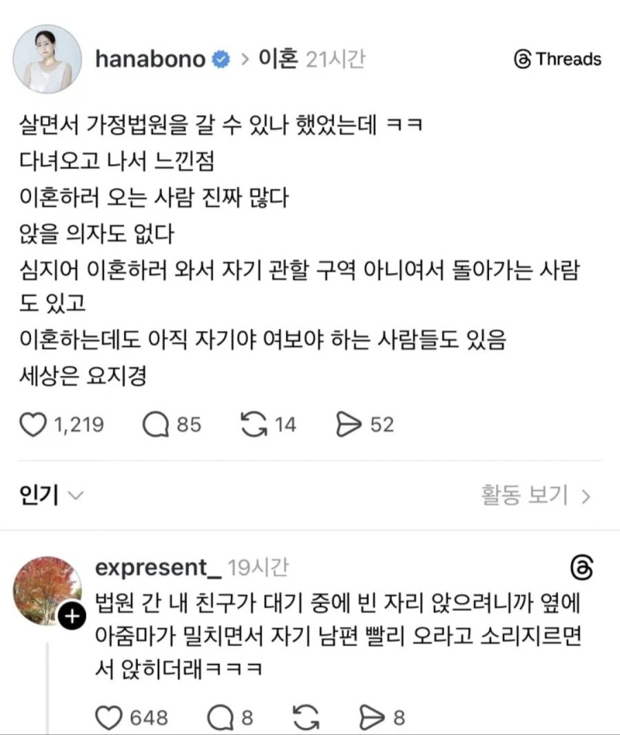 실제 이혼부부들 가정법원 풍경 작성자 정보 최고관리자 작성일 01.30 14:42 컨텐츠 정보 13 조회 0 댓글 0 추천 0 비추천 목록 0 추천 추천 비추천 0 비추천 댓글 로그인한 회원만 댓글 등록이 가능합니다. 이전 다음 목록