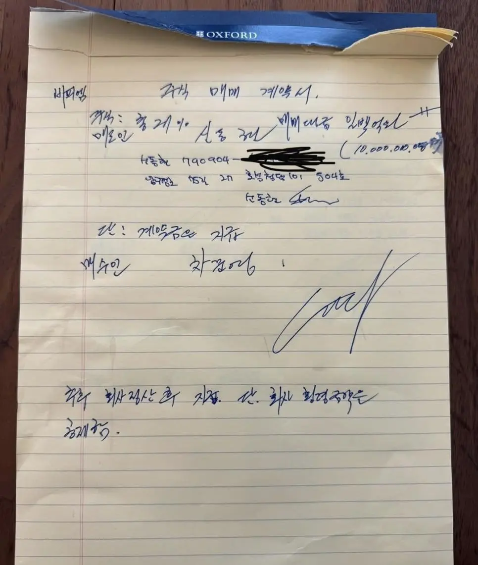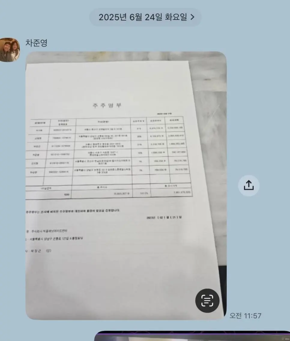 첫번째는 차가원 삼촌이 저애게 2대 주주를 유지 시켜줄테니 함께 뺏어보자며 보낸 가짜 서류 이며 저에게 지분을 넘기자고 한 주주명부 와 주식양도 매매 계약서 차준영 자필 계약서 입니다.