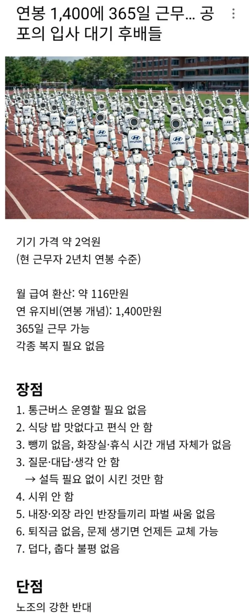 연봉 1,400에 365일 근무에 몰려든 신입들 작성자 정보 최고관리자 작성일 02.06 14:48 컨텐츠 정보 22 조회 0 댓글 0 추천 0 비추천 목록 0 추천 추천 비추천 0 비추천 댓글 로그인한 회원만 댓글 등록이 가능합니다. 이전 다음 목록