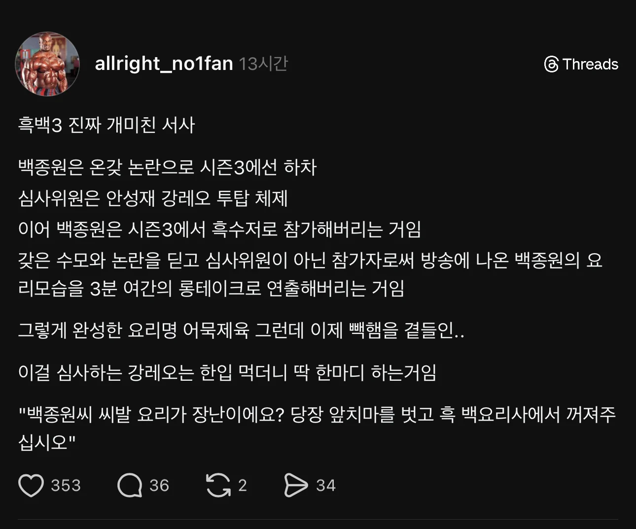 흑백요리사3 미친 서사 작성자 정보 최고관리자 작성일 2025.12.21 12:14 컨텐츠 정보 9 조회 0 댓글 0 추천 0 비추천 목록 0 추천 추천 비추천 0 비추천 댓글 로그인한 회원만 댓글 등록이 가능합니다. 이전 다음 목록