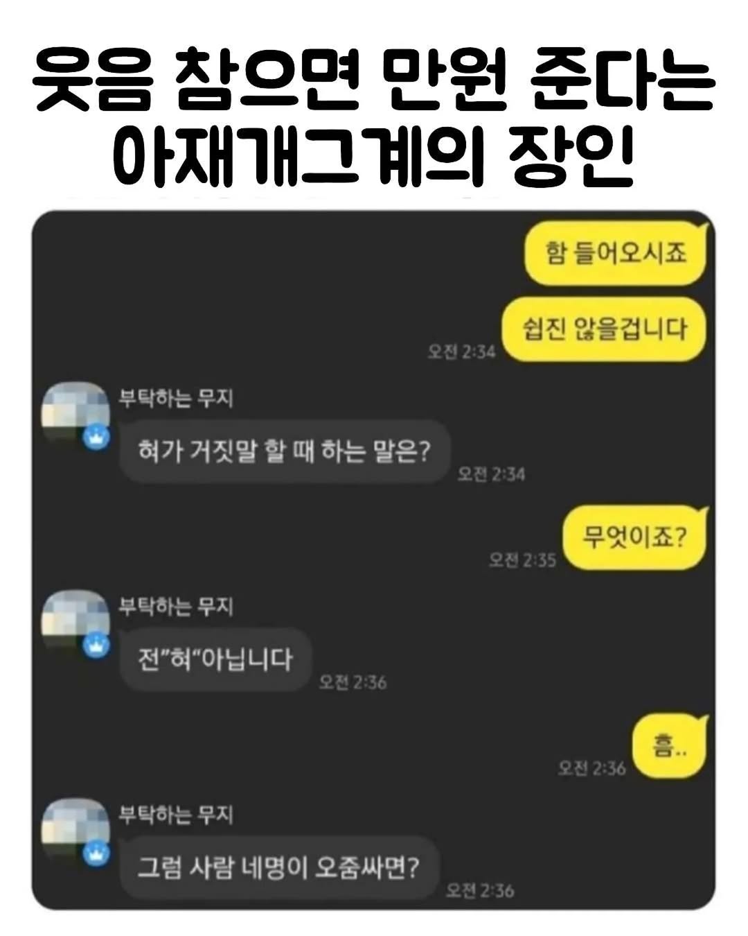 장인이 말아주는 아재개그 작성자 정보 최고관리자 작성일 2025.12.20 10:57 컨텐츠 정보 7 조회 0 댓글 0 추천 0 비추천 목록 0 추천 추천 비추천 0 비추천 댓글 로그인한 회원만 댓글 등록이 가능합니다. 이전 다음 목록