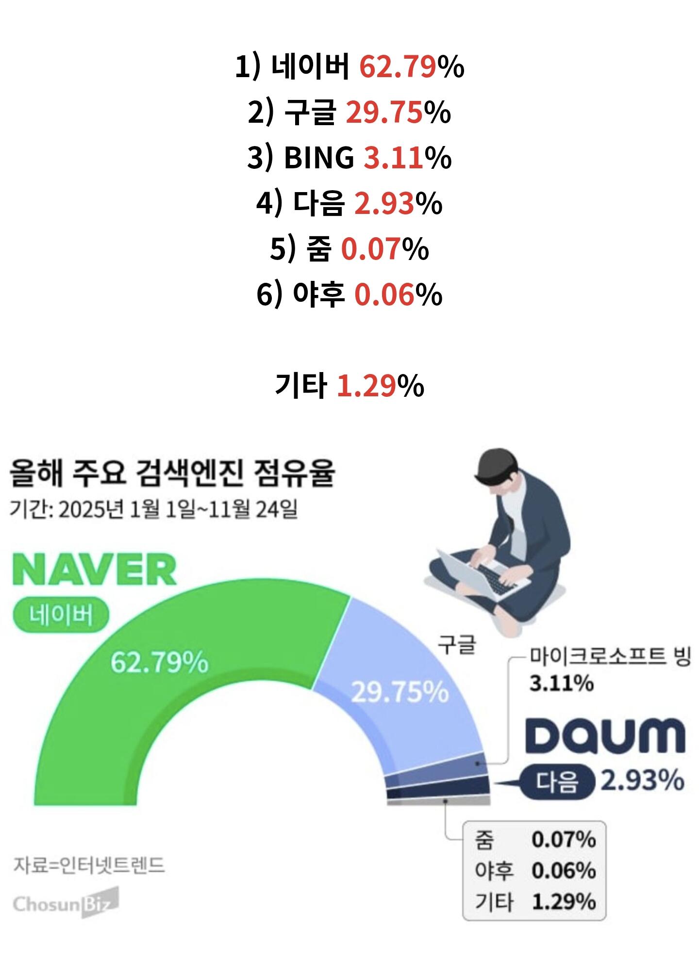 올해 주요 검색엔진 점유율 작성자 정보 최고관리자 작성일 2025.12.19 12:41 컨텐츠 정보 9 조회 0 댓글 0 추천 0 비추천 목록 0 추천 추천 비추천 0 비추천 댓글 로그인한 회원만 댓글 등록이 가능합니다. 이전 다음 목록