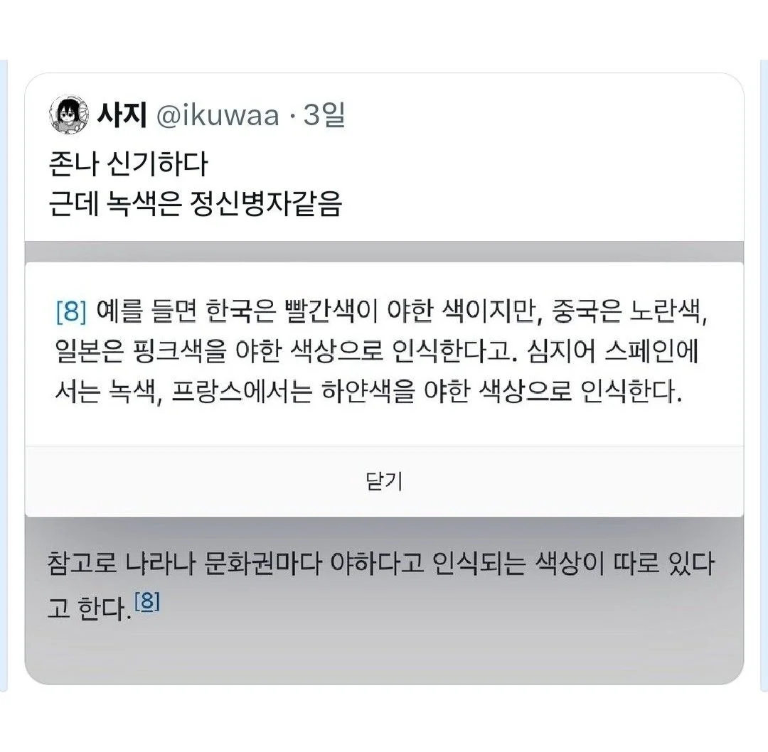 국가별로 생각하는 야한 색 작성자 정보 최고관리자 작성일 2025.12.18 07:57 컨텐츠 정보 4 조회 0 댓글 0 추천 0 비추천 목록 0 추천 추천 비추천 0 비추천 댓글 로그인한 회원만 댓글 등록이 가능합니다. 이전 다음 목록