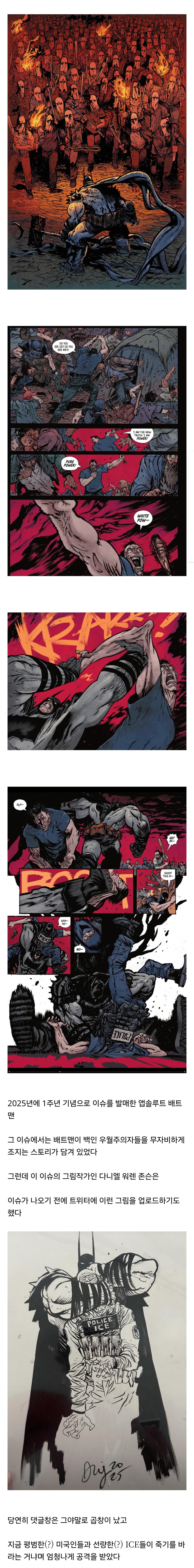 배트맨 코믹스 작가가 미국에서 논란이 된 이유 작성자 정보 최고관리자 작성일 2025.12.16 16:06 컨텐츠 정보 6 조회 0 댓글 0 추천 0 비추천 목록 *참고로 현재 미국 이민단속국(ICE)는 아메리카 원주민을 불체자 취급한거로 개까이고 있다 0 추천 추천 비추천 0 비추천 댓글 로그인한 회원만 댓글 등록이 가능합니다. 이전 다음 목록