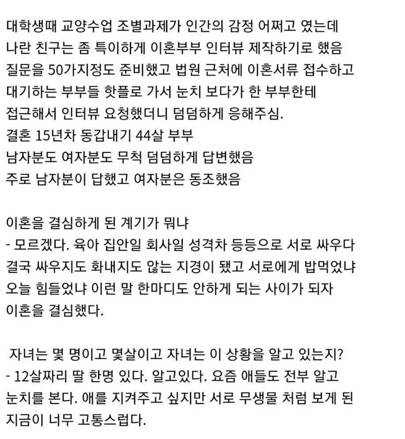 이혼부부를 인터뷰한 대학생 작성자 정보 최고관리자 작성일 2025.12.15 17:02 컨텐츠 정보 6 조회 0 댓글 0 추천 0 비추천 목록 0 추천 추천 비추천 0 비추천 댓글 로그인한 회원만 댓글 등록이 가능합니다. 이전 다음 목록