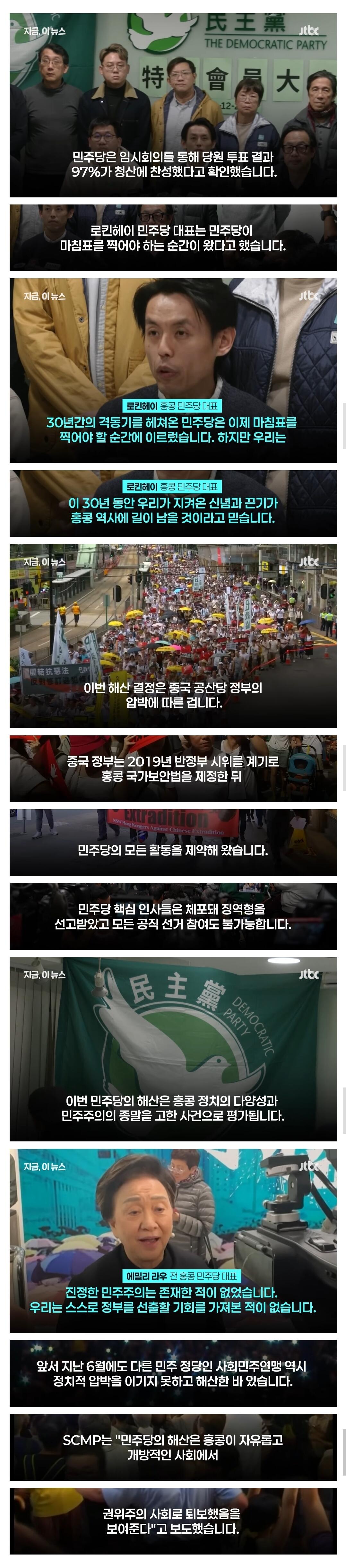 홍콩 민주당 정당해산 결정... 중국 공산당 압박에 민주주의 종말 작성자 정보 최고관리자 작성일 2025.12.15 11:32 컨텐츠 정보 5 조회 0 댓글 0 추천 0 비추천 목록 0 추천 추천 비추천 0 비추천 댓글 로그인한 회원만 댓글 등록이 가능합니다. 이전 다음 목록