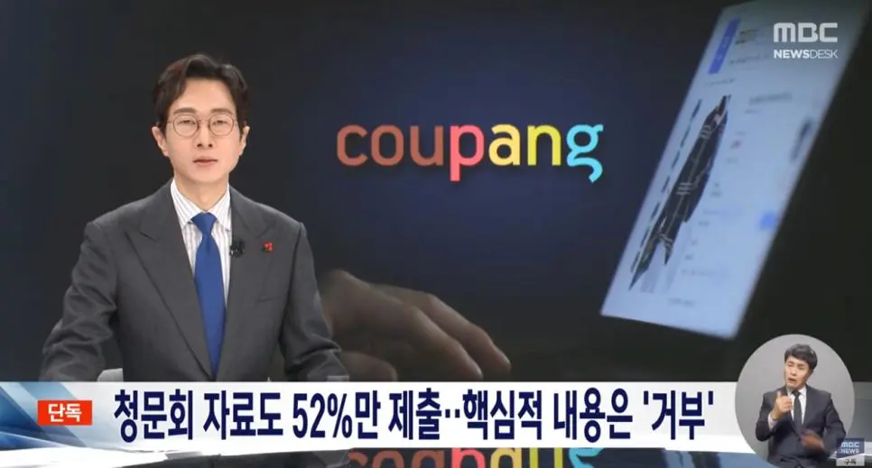 쿠팡 청문회 자료 52%만 제출 핵심적 내용은"거부"