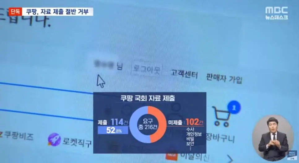 MBC 분석 결과 총 216건 가운데 쿠팡이 실제로 자료를 제출한 것은 단 114건, 절반가량인 52.8%에 불과했습니다.