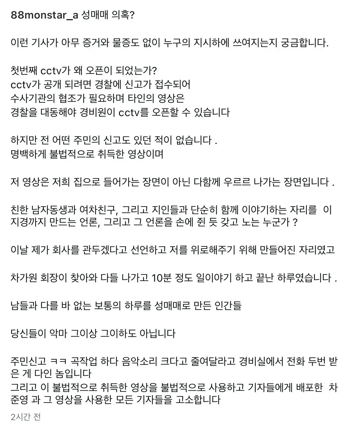 MC몽 성매매 의혹 관련 입장문 작성자 정보 최고관리자 작성일 02.05 19:33 컨텐츠 정보 16 조회 0 댓글 0 추천 0 비추천 목록 아네.. 그렇다고 하네요. 0 추천 추천 비추천 0 비추천 댓글 로그인한 회원만 댓글 등록이 가능합니다. 이전 다음 목록