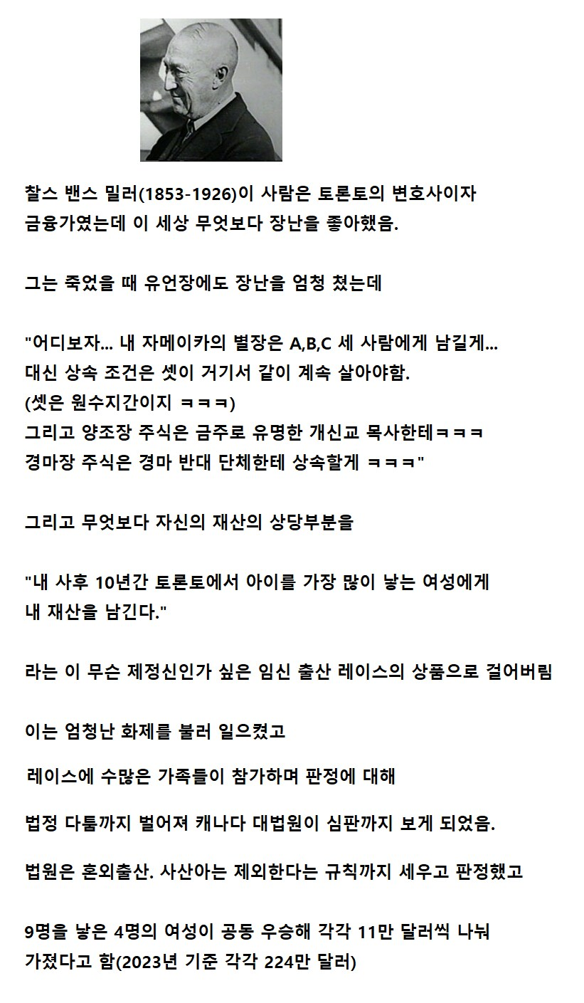 백만장자의 유언장이 만든 대 임신시대 작성자 정보 최고관리자 작성일 2025.12.12 19:53 컨텐츠 정보 10 조회 0 댓글 0 추천 0 비추천 목록 이 유언장은 본질적으로 드물고 변덕스러운 것입니다. 왜냐하면 저는 부양가족이나 가까운 친척이 없고, 사망 시 재산을 남겨야 할 의무도 없으며, 제가 남기는 것은 평생 동안 필요 이상으로 재산을 모으고 보유한 어리석음의 증거입니다. -찰스 밀러의 유언- 224만 달러 33억 960만 원 0 추천 추천 비추천 0 비추천 댓글 로그인한 회원만 댓글 등록이 가능합니다. 이전 다음 목록