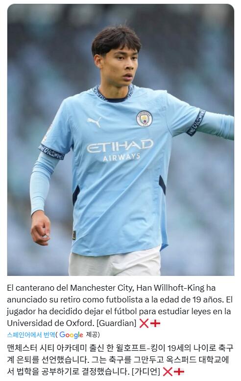 맨시티 19세 유망주, 축구선수 은퇴 작성자 정보 최고관리자 작성일 2025.11.24 16:33 컨텐츠 정보 220 조회 0 댓글 0 추천 0 비추천 목록 한 윌호프트 킹 (Han Willhoft-King) 06년생 미드필더잉글랜드 청소년 대표토트넘, 맨시티 유스옥스포드 법대 진학 0 추천 추천 비추천 0 비추천 댓글 로그인한 회원만 댓글 등록이 가능합니다. 이전 다음 목록