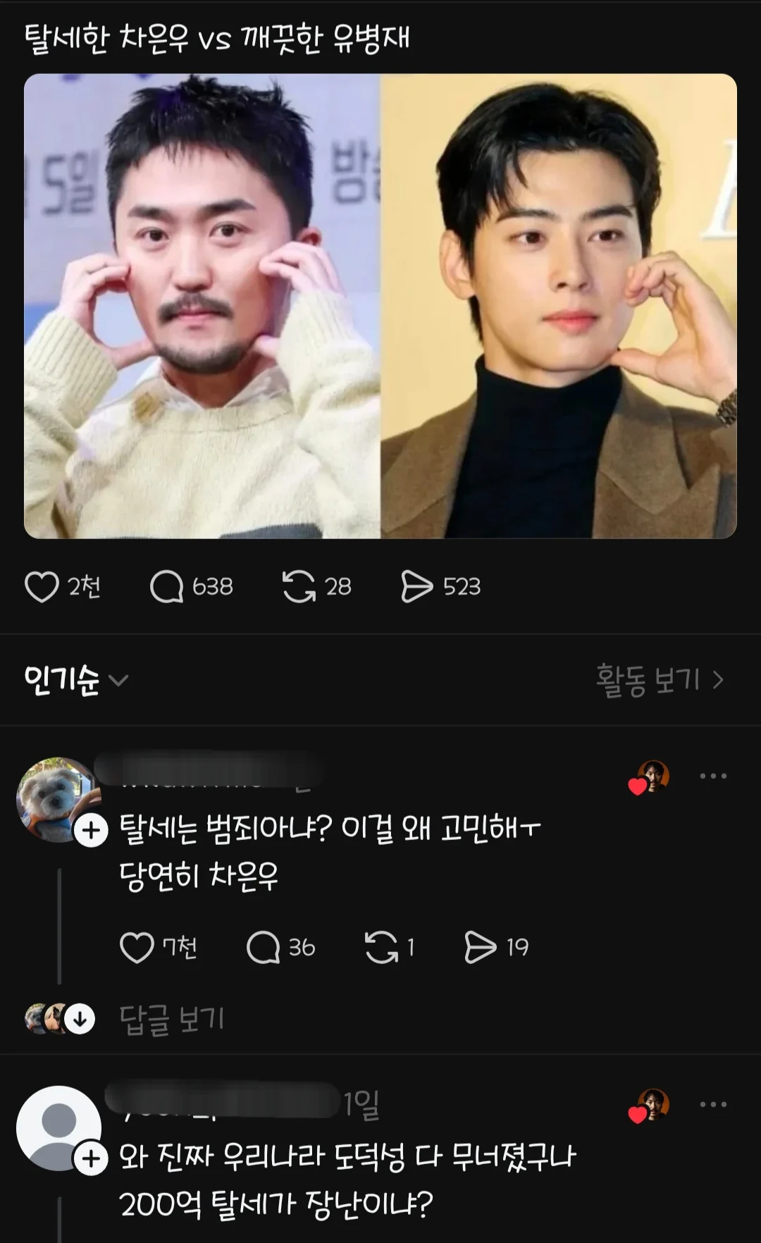 탈세한건 차은우인데 더 고통받는 유병재 작성자 정보 최고관리자 작성일 01.25 15:08 컨텐츠 정보 10 조회 0 댓글 0 추천 0 비추천 목록 0 추천 추천 비추천 0 비추천 댓글 로그인한 회원만 댓글 등록이 가능합니다. 이전 다음 목록