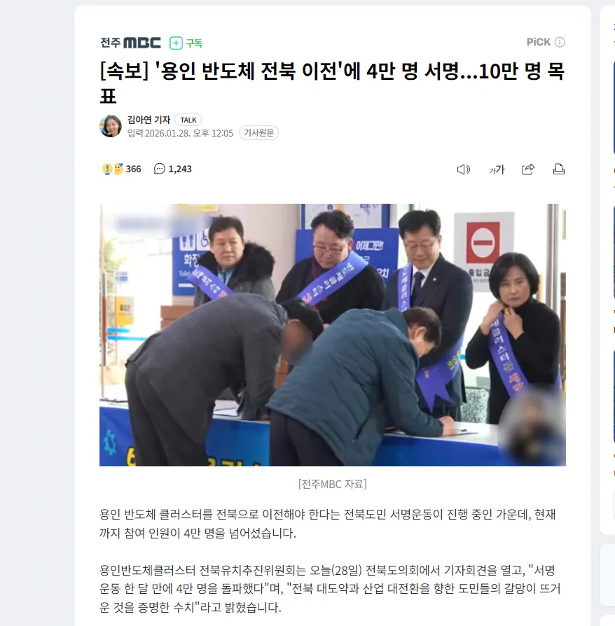용인 반도체 전북 이전 4만명 서명 작성자 정보 최고관리자 작성일 01.28 16:15 컨텐츠 정보 15 조회 0 댓글 0 추천 0 비추천 목록 아니..이게 서명으로 될일이 아니라고요.. 서명을 4만명 돌파해봤자... 허허.... 0 추천 추천 비추천 0 비추천 댓글 로그인한 회원만 댓글 등록이 가능합니다. 이전 다음 목록