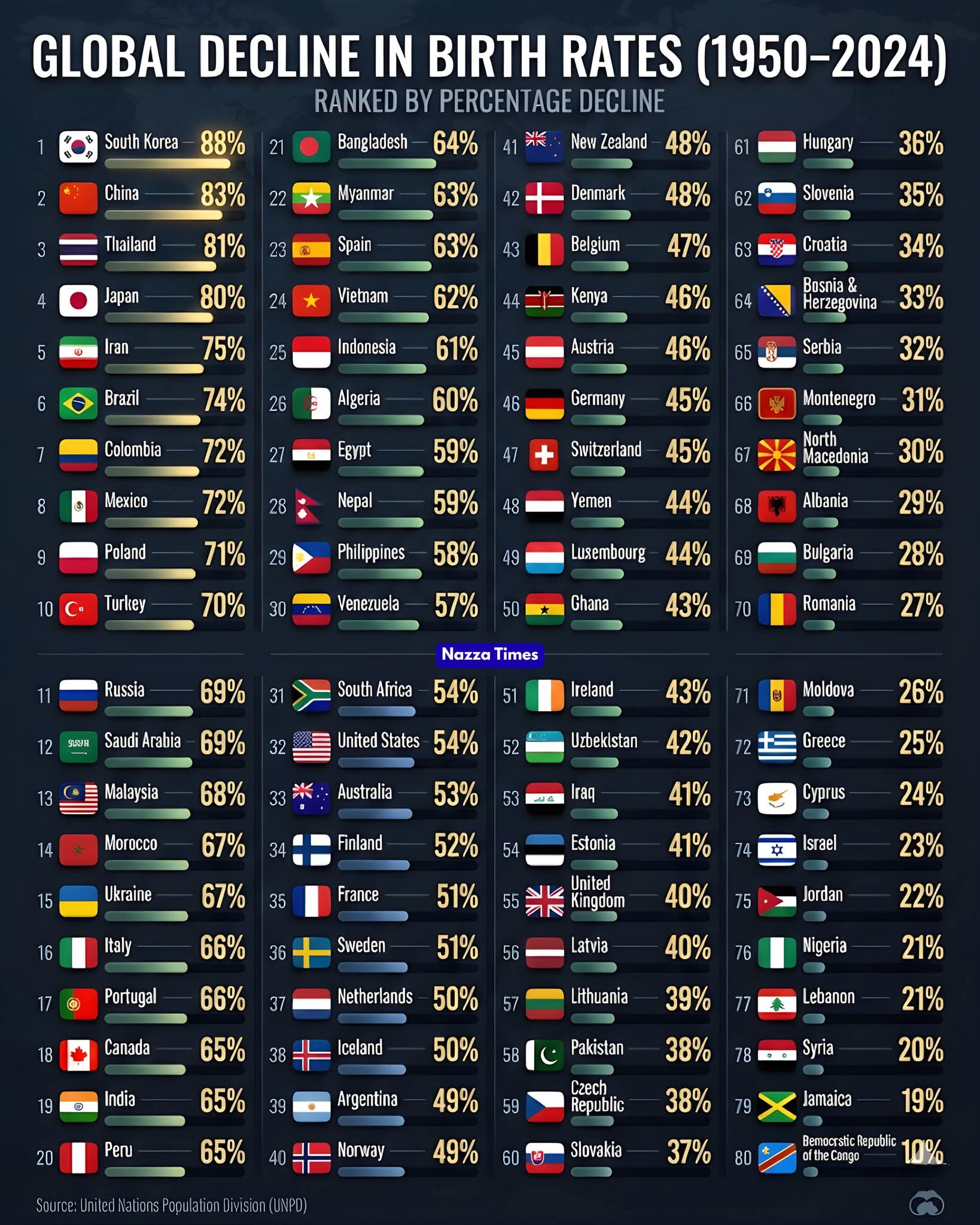 전세계 출생률 감소 1950-2024 작성자 정보 최고관리자 작성일 01.29 06:30 컨텐츠 정보 12 조회 0 댓글 0 추천 0 비추천 목록 0 추천 추천 비추천 0 비추천 댓글 로그인한 회원만 댓글 등록이 가능합니다. 이전 다음 목록