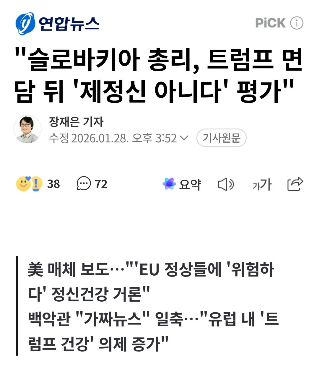 결국 못참고 질러버린 슬로바키아 총리 작성자 정보 최고관리자 작성일 01.29 06:31 컨텐츠 정보 11 조회 0 댓글 0 추천 0 비추천 목록 0 추천 추천 비추천 0 비추천 댓글 로그인한 회원만 댓글 등록이 가능합니다. 이전 다음 목록