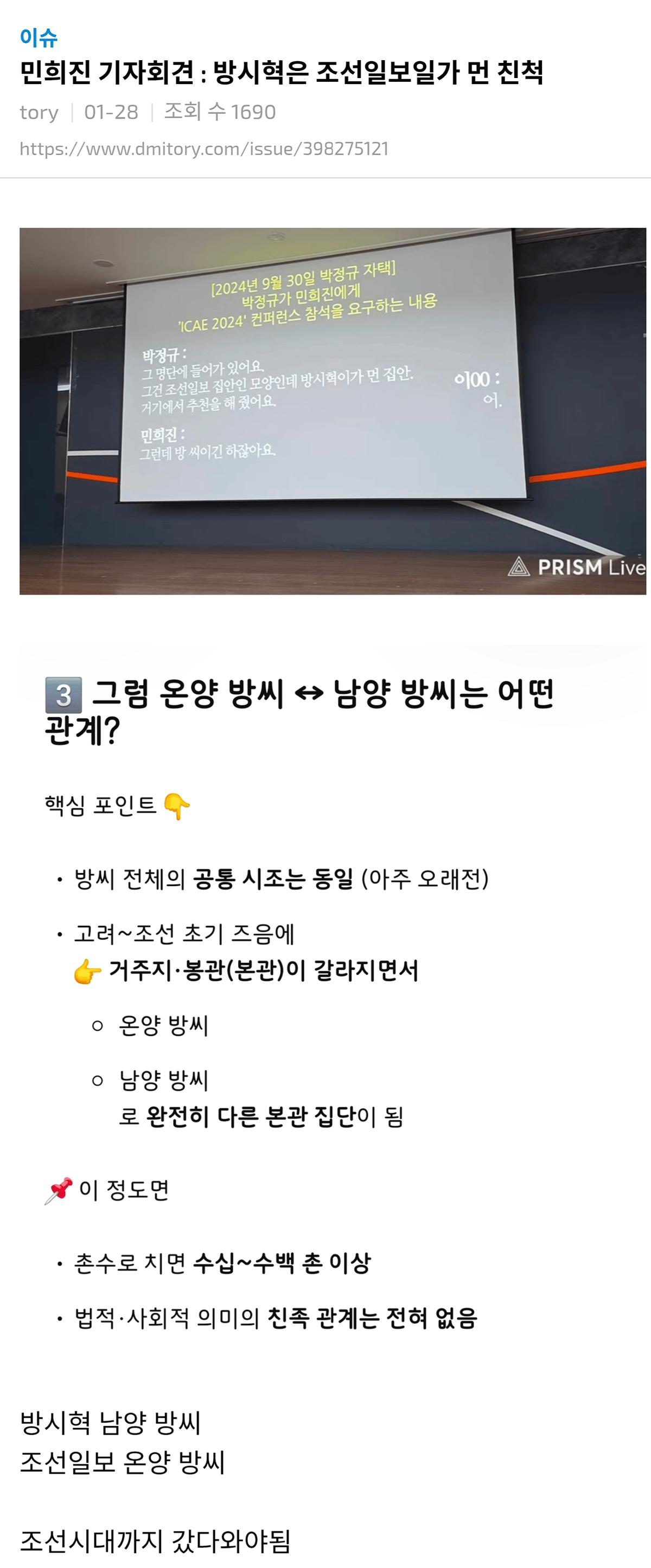 민희진 기자회견 : 방시혁은 조선일보 방가랑 먼 친척 작성자 정보 최고관리자 작성일 01.29 18:43 컨텐츠 정보 21 조회 0 댓글 0 추천 0 비추천 목록 0 추천 추천 비추천 0 비추천 댓글 로그인한 회원만 댓글 등록이 가능합니다. 이전 다음 목록