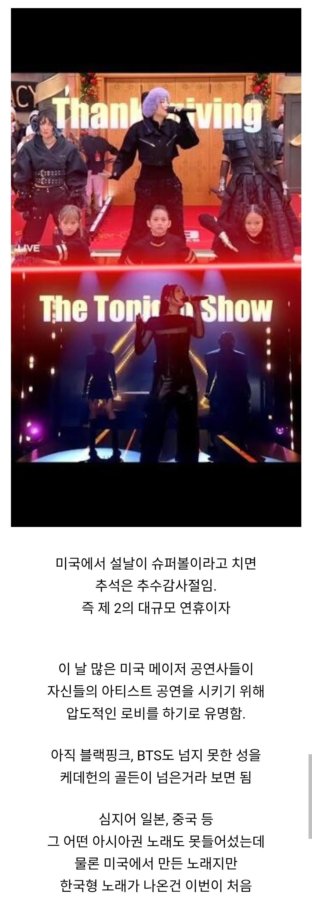 미국 추수감사절에 케데헌의 '골든'이 불린게 대단한 이유 작성자 정보 최고관리자 작성일 11.29 00:01 컨텐츠 정보 13 조회 0 댓글 0 추천 0 비추천 목록 0 추천 추천 비추천 0 비추천 댓글 로그인한 회원만 댓글 등록이 가능합니다. 이전 다음 목록