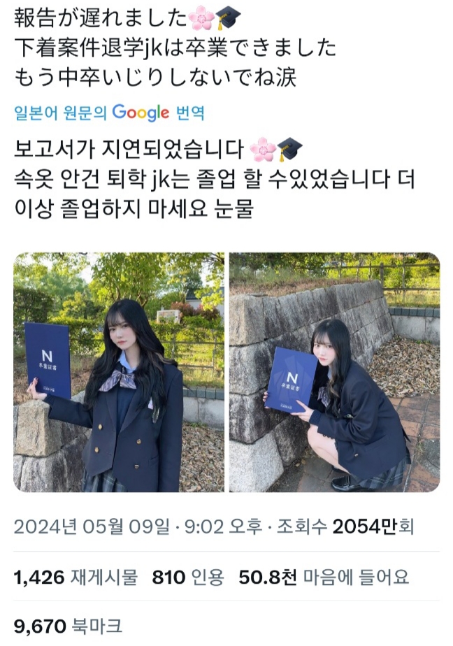 인스타로 속옷 광고 찍어서 퇴학 당한 일본 여고생 근황